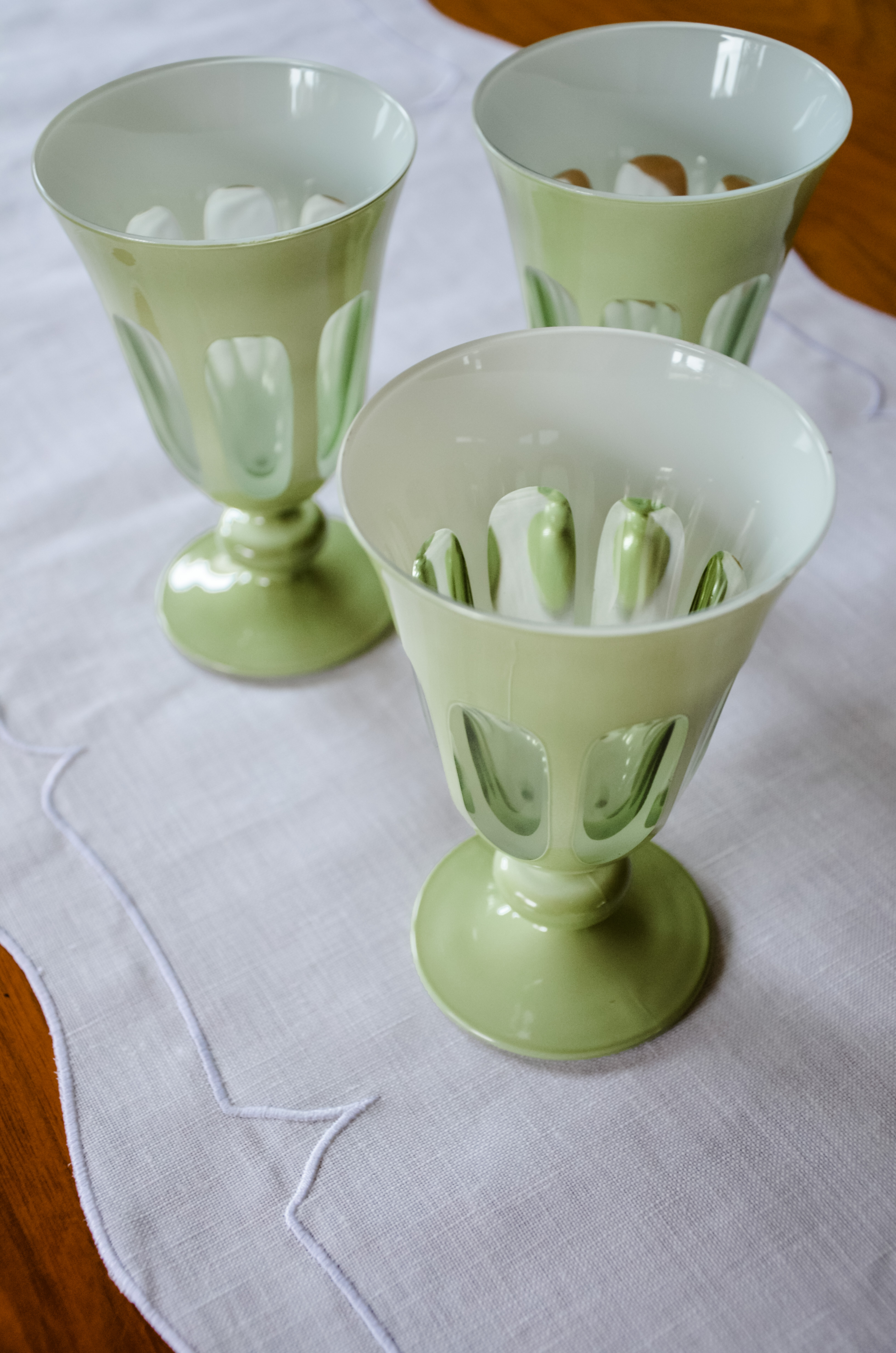 Glassware happens to be my favorite thing to collect and one of my go-tos is the Perle Collection from Zafferano. The collection has lots of pieces to choose from, but the beverage and tumbler options are my favorite. The colors are vibrant, they look elegant, and they can be washed in the dishwasher, which is a HUGE win when it comes to pretty glassware. I used the clear beverage glasses in this tablescape as my water glasses, along with sage green tulip glasses, and blush wine glasses.