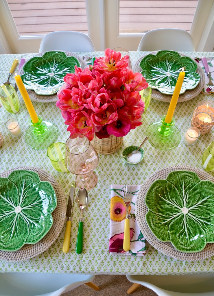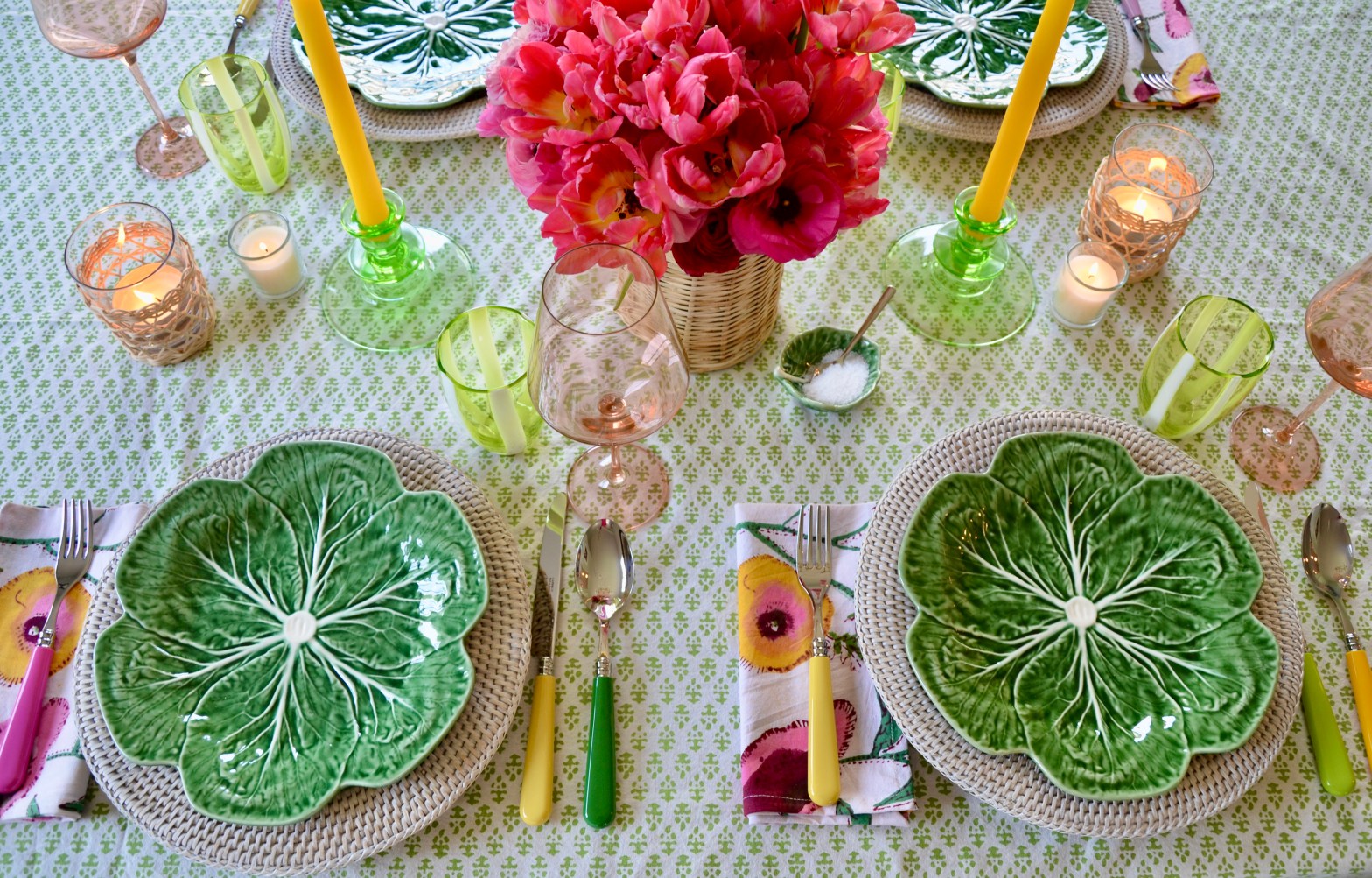Sometimes the best tables come together without much planning. This set-up was a happy accident that occurred while I was cleaning up after shooting another table. I’m honestly shocked by how many times I’ve been able to incorporate these cabbage plates in my table designs. I purchased them back in January imagining that I would use them for Easter and that would be that. I’m happy that I was so wrong! They add a bit of playfulness and dimension if your table is feeling flat. They also happen to be dishwasher safe, which is always my first question when buying dishes or glassware.